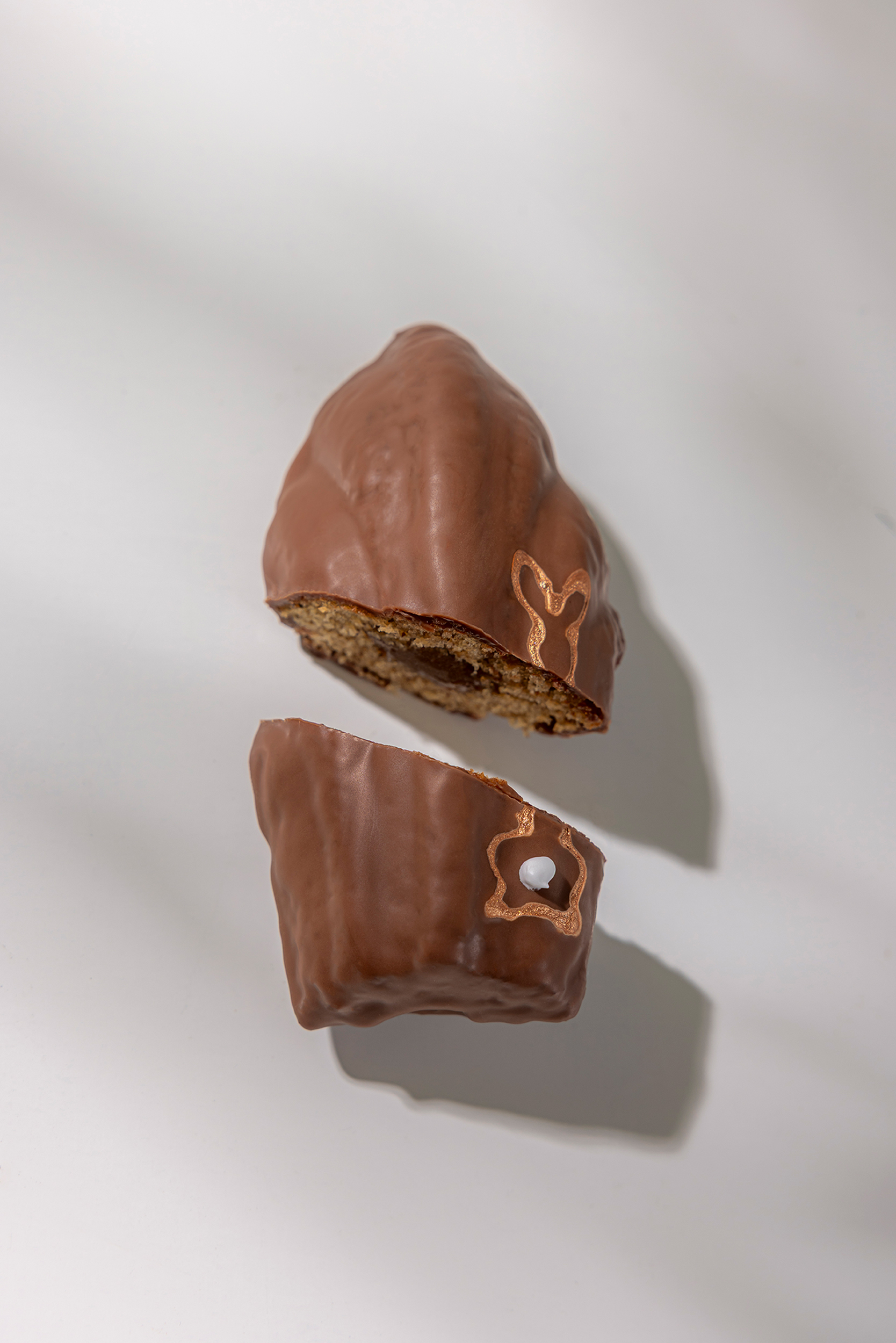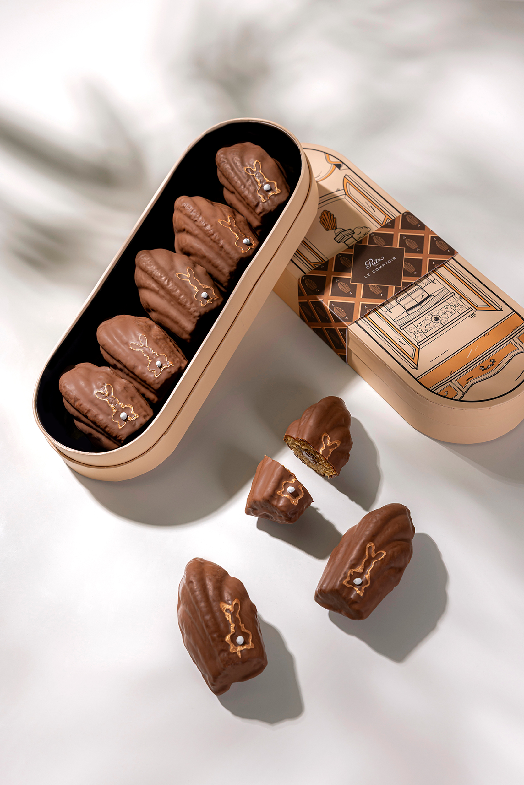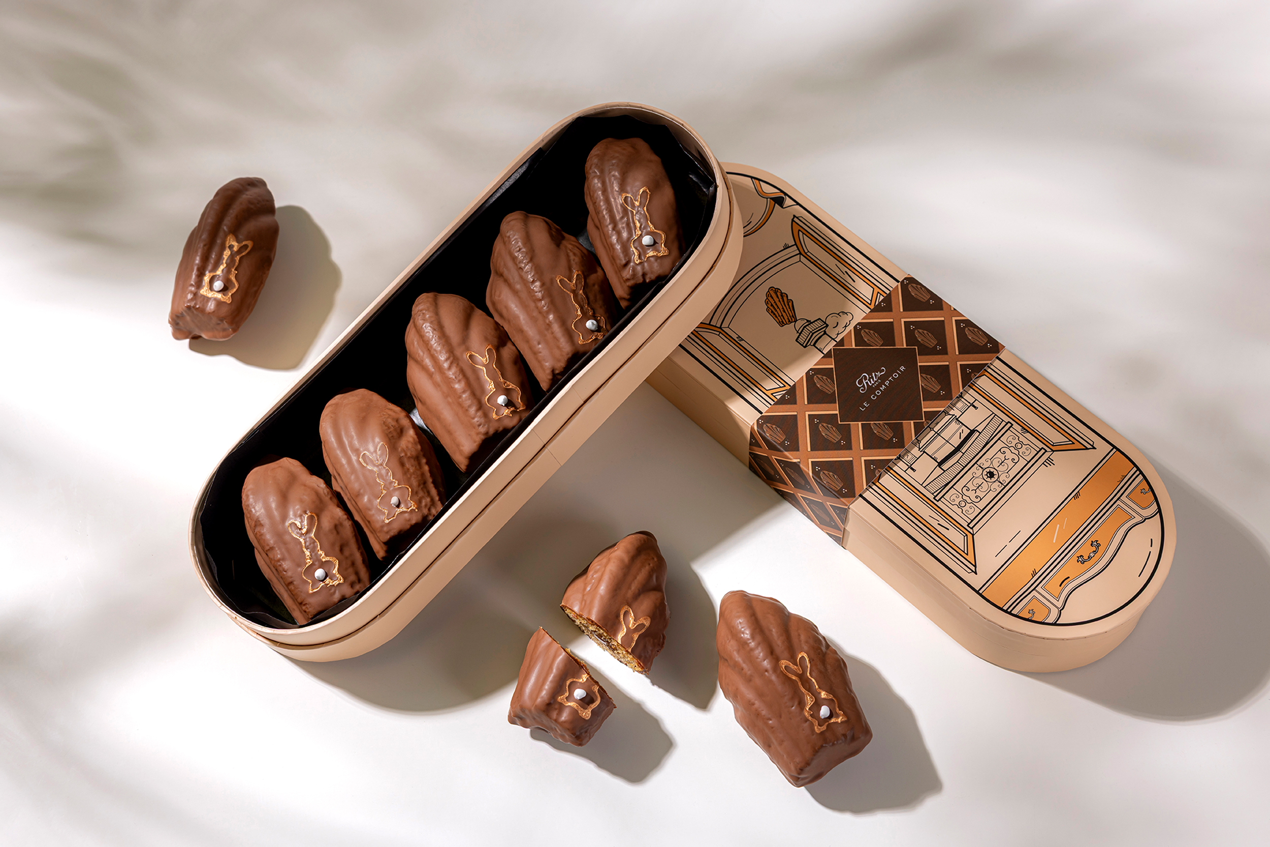 Deliciously soft, this madeleine reveals a melting hazelnut spread center for an intensely indulgent experience. It is coated in delicate milk chocolate and adorned with a charming bunny motif, the signature of this seasonal edition