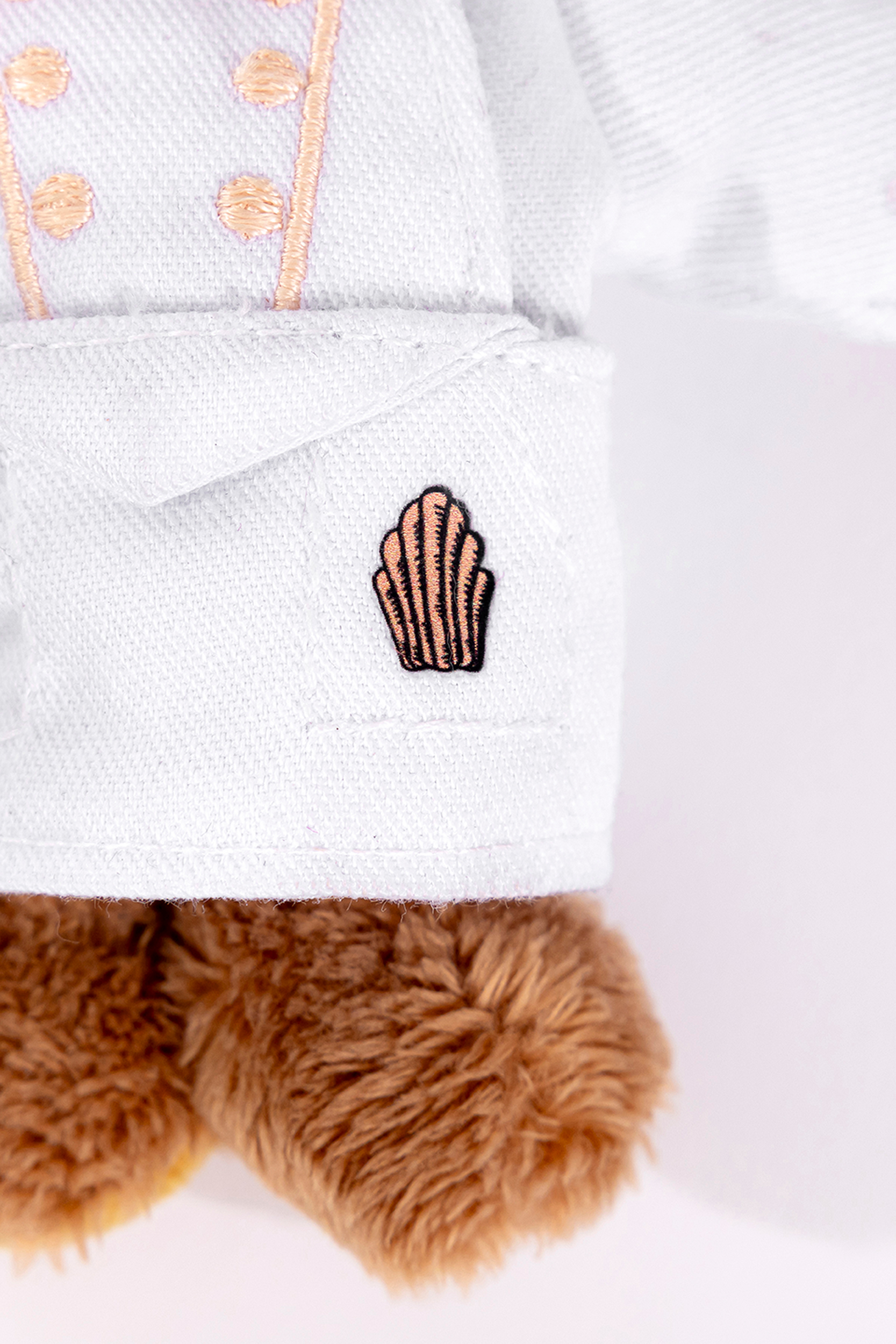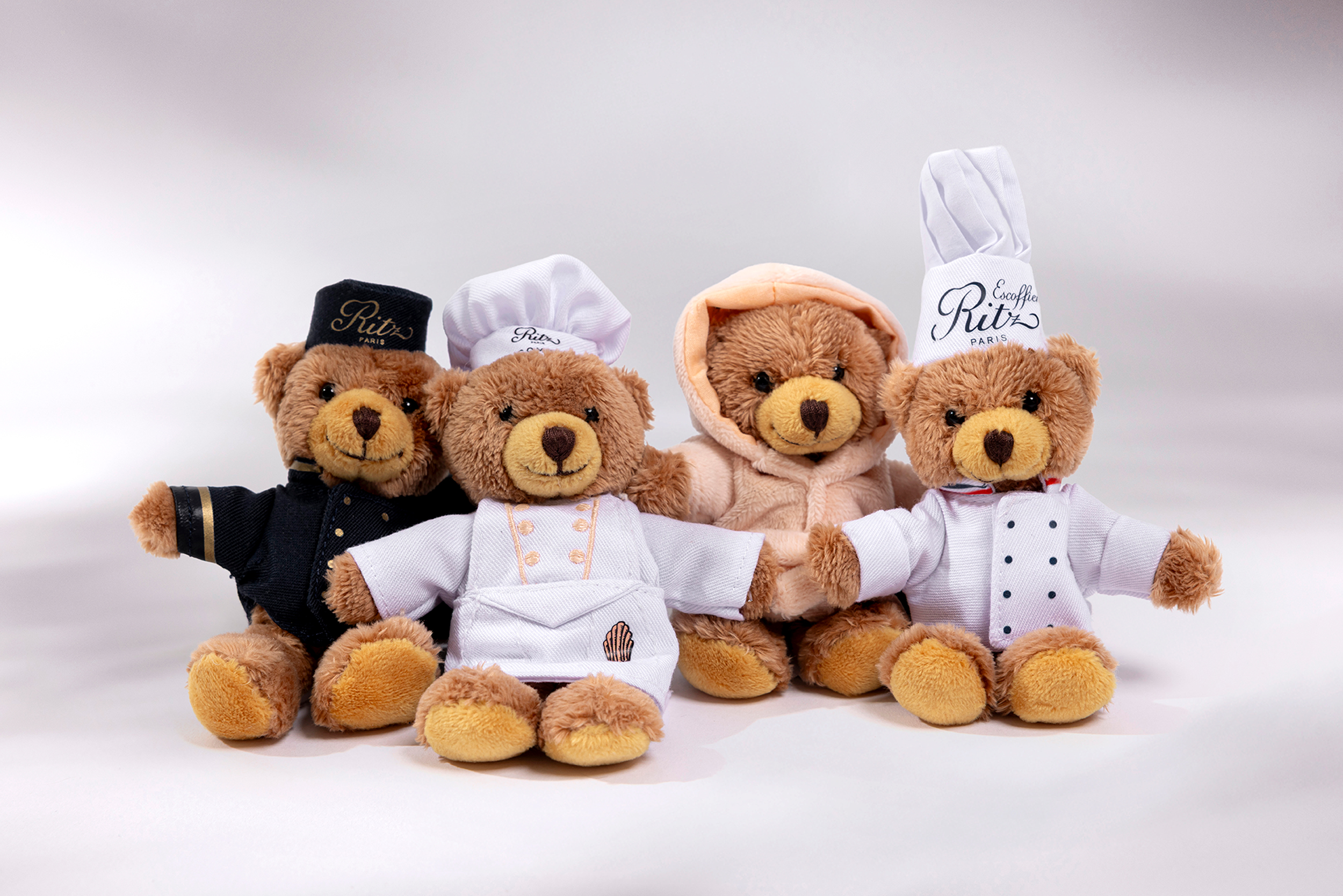 Behind the enchanting scenes of the Ritz Paris, a little groom has traded his iconic uniform for a pastry chef’s outfit. With his miniature toque and apron, he embodies the gourmet elegance and playful spirit of Le Comptoir. A charming travel companion, he brings a touch of Parisian magic and sweetness wherever you go.