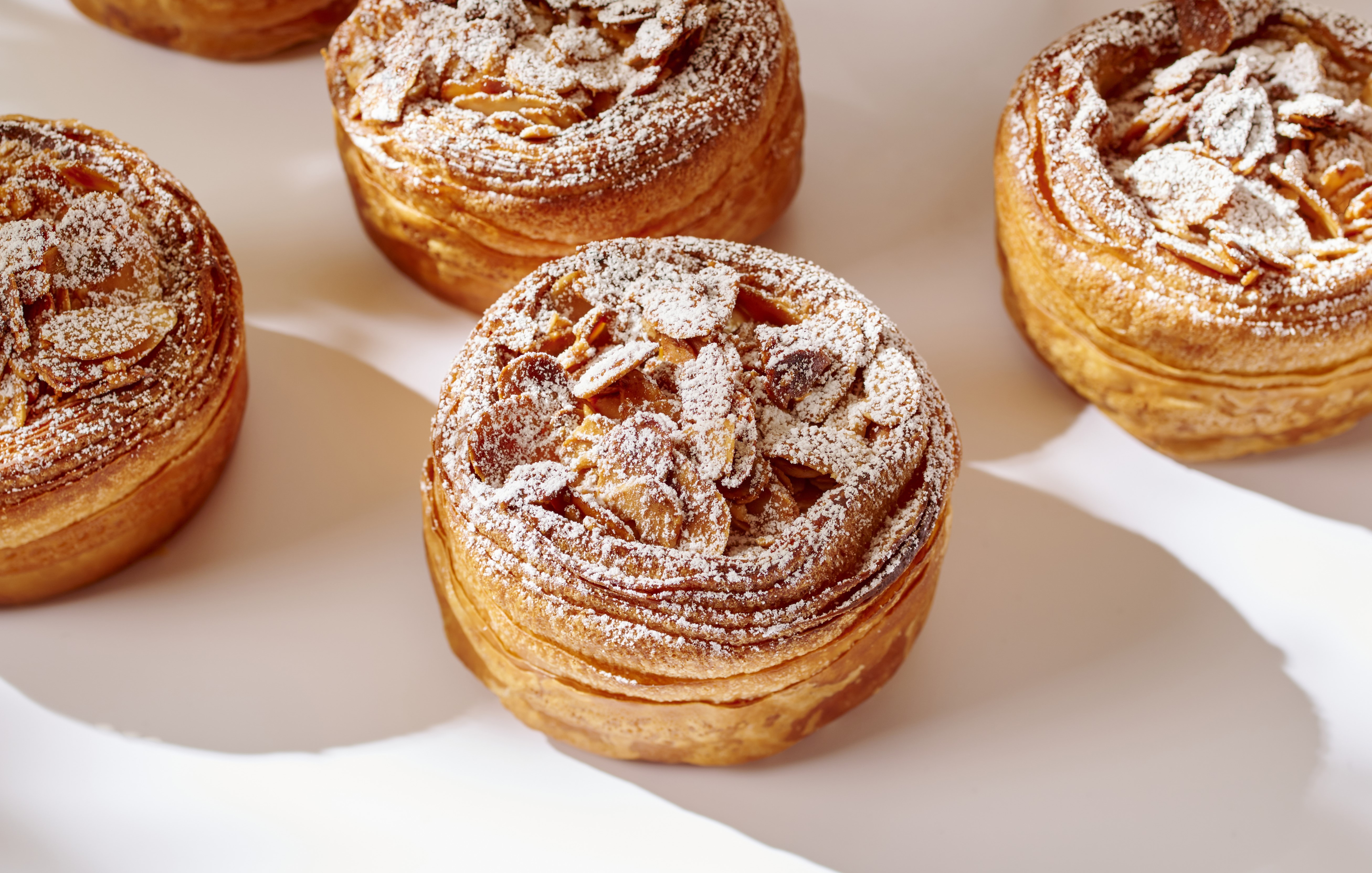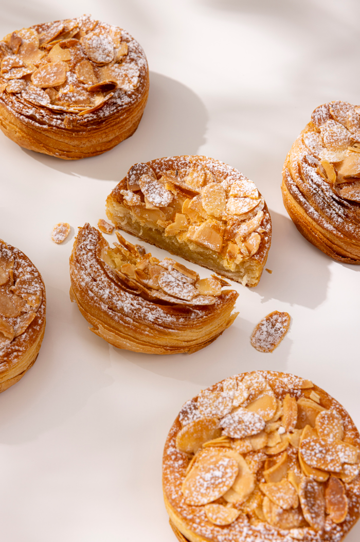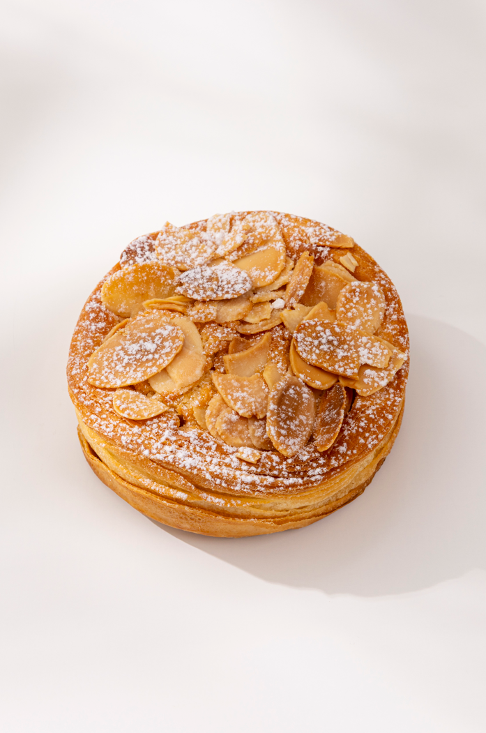 La Galette des Rois Frangipane se compose d’un feuilletage subtil et croustillant, renfermant une frangipane à l’amande. Elle est surmontée d’amandes effilées grillées pour un croquant savoureux. Cette création est également disponible en format 6‑8 personnes.