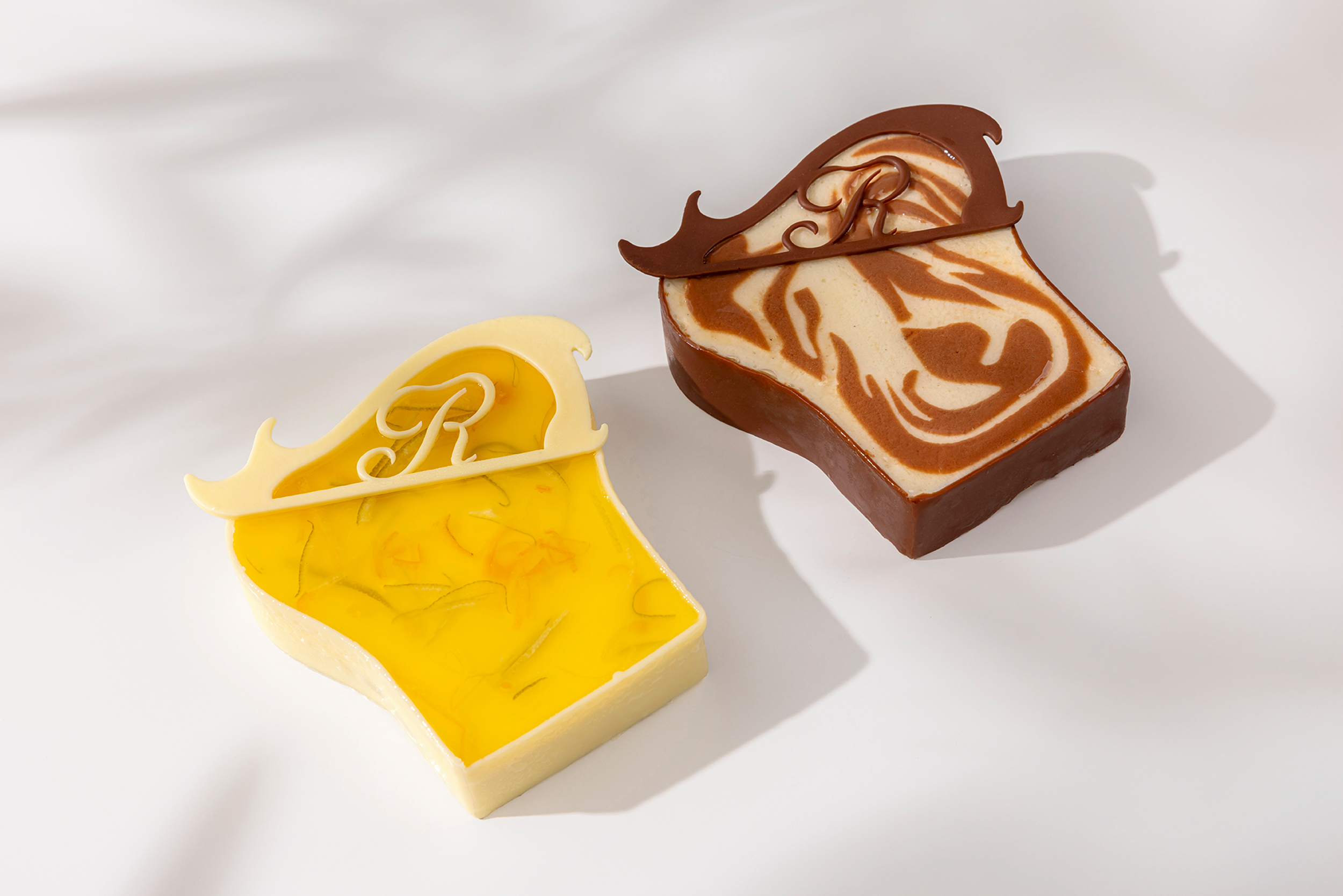 L’Entremets Marbré créé par François Perret se dévoile en un format individuel aux agrumes pour les fêtes de Noël. Déclinaison raffinée de la Bûche Traîneau Marbré Agrumes, cette création capture l’esprit des célébrations dans une version miniature d’une exquise élégance. Elle célèbre l’équilibre parfait entre la vivacité des agrumes et la douceur de la vanille.